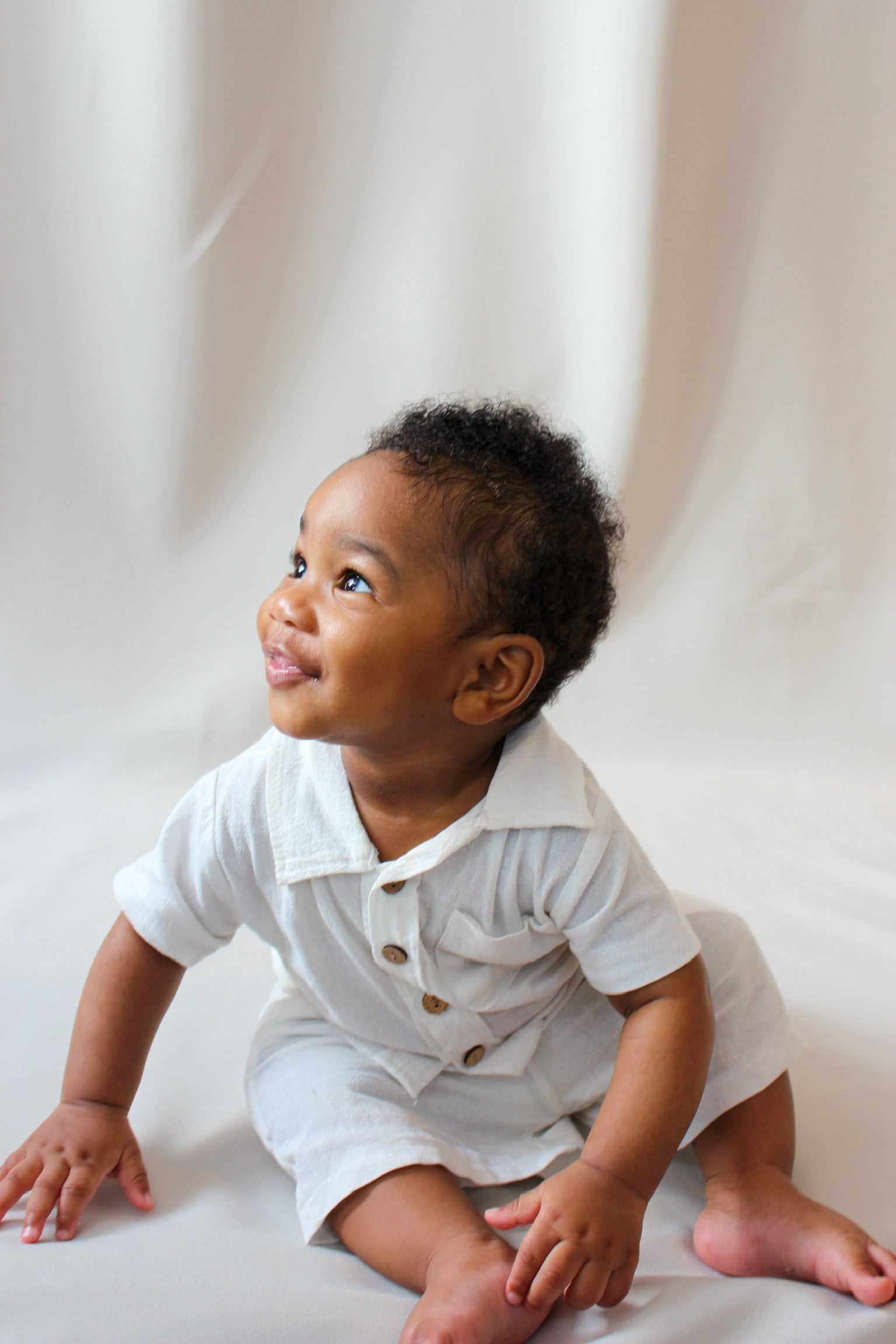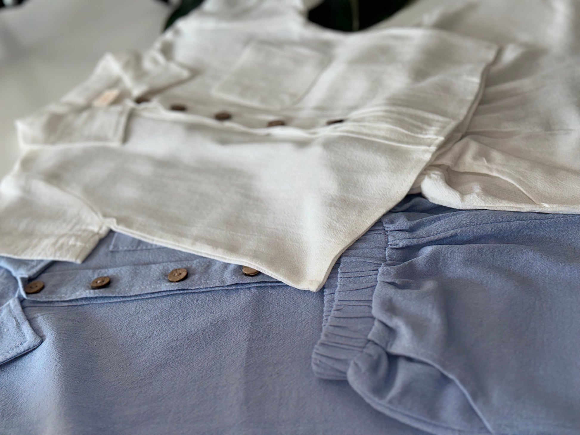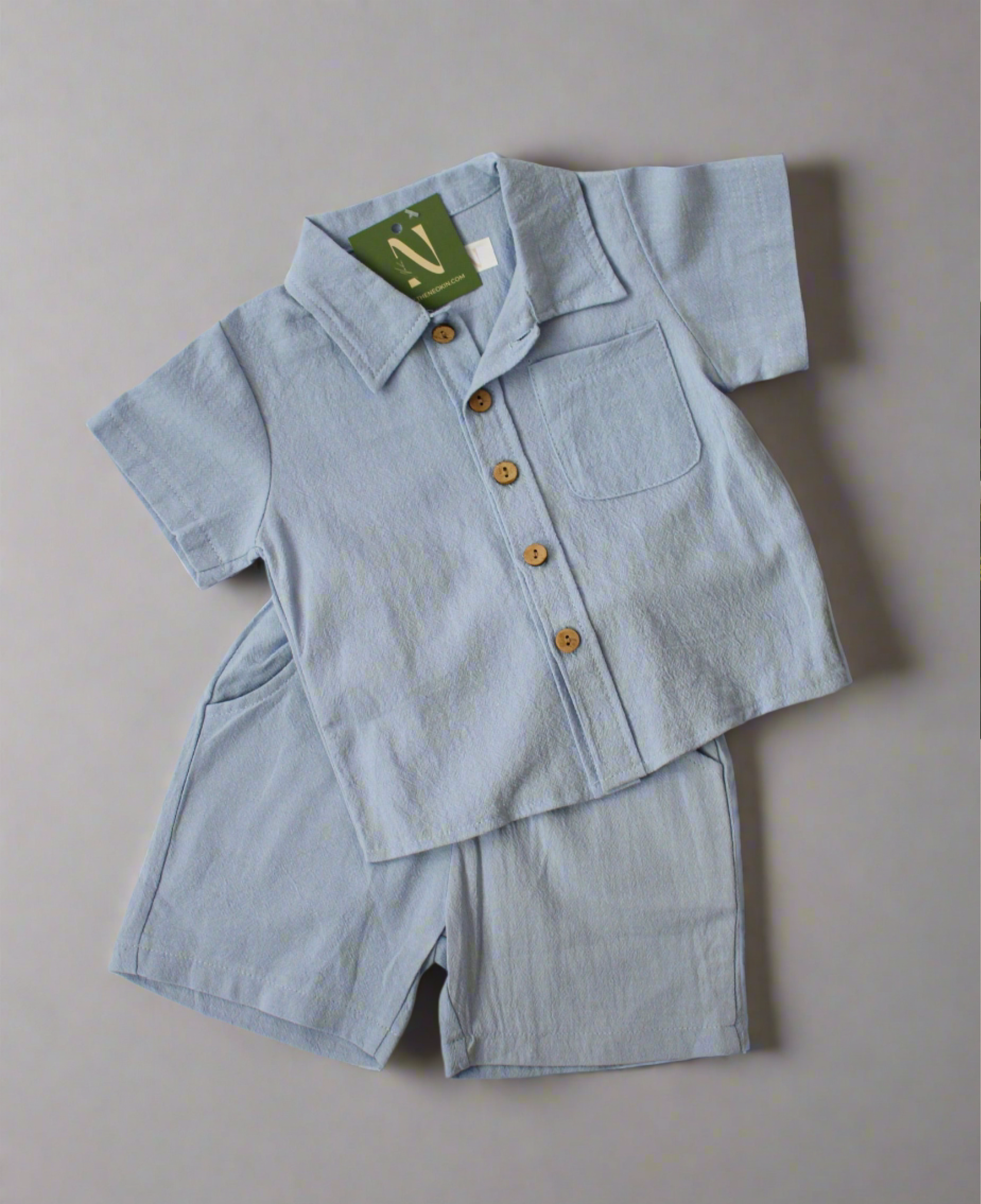 Go smart and look sharp with The Smartie Set! This charmingly quirky set includes a smart short and button down shirt, made from breathable cotton for an airy feel. Available in blue or white, it's a must-have for any fashion-forward individual. (Sharp style and maximum comfort - what more could you want?!)